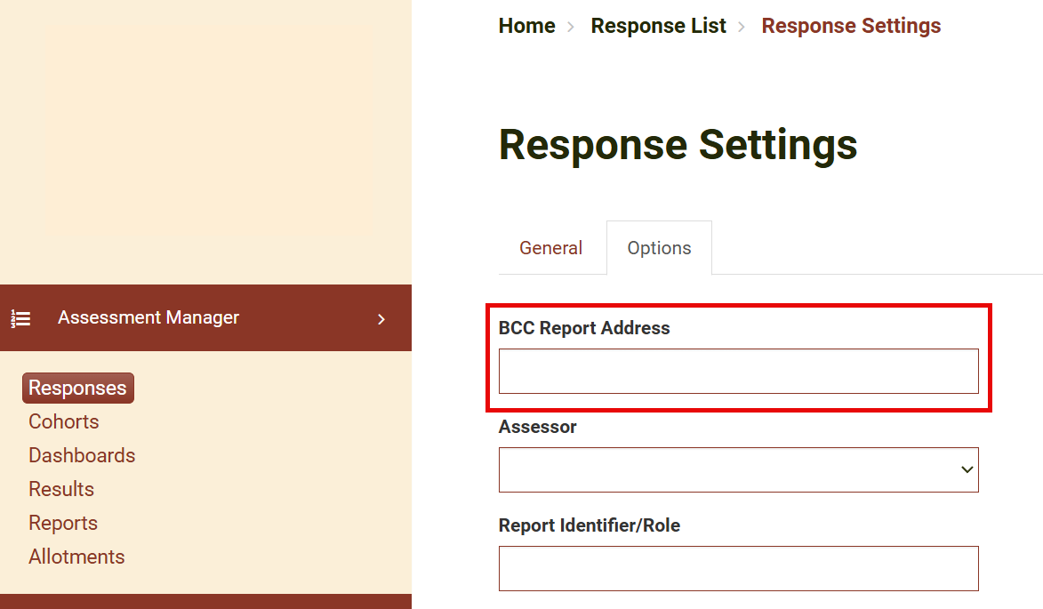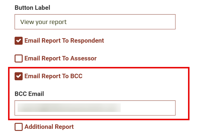 Alternatively, when you create a response, either through the system or by uploading a CSV, you can complete the BCC Report Address field.