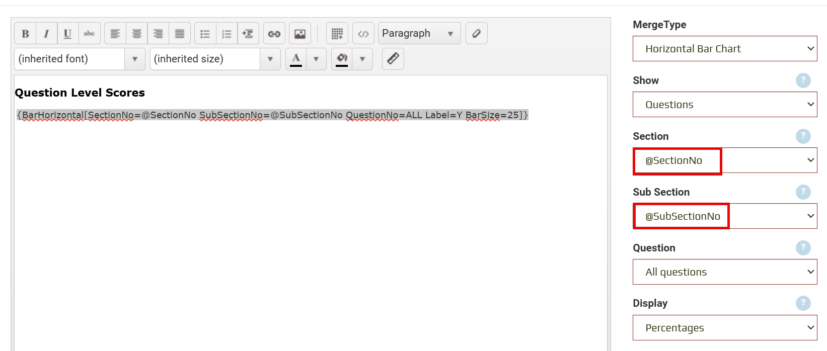 - Results are not suitable when the final section of the assessment is the calculations section with 'Calculations in report' specified against the section settings. Graphs/charts relying on the calculations in the last section will result in errors until the system has run the calculations upon completion of the response while it prepares the report.
