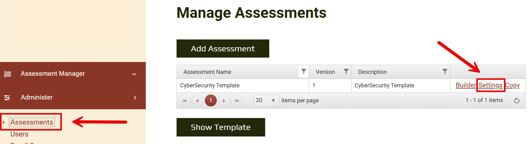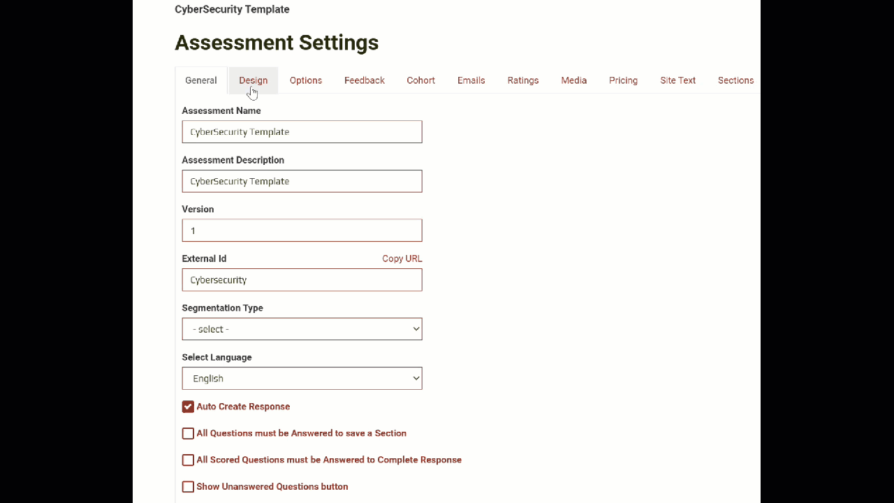 The Cybersecurity template is intended as a starting point, you can modify it as much as you wish, using the Assessment Builder.