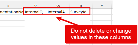 Important: Do not delete or change the three ID columns on the right-hand side of the spreadsheet. These are used to match the translated content back to the correct assessment elements.