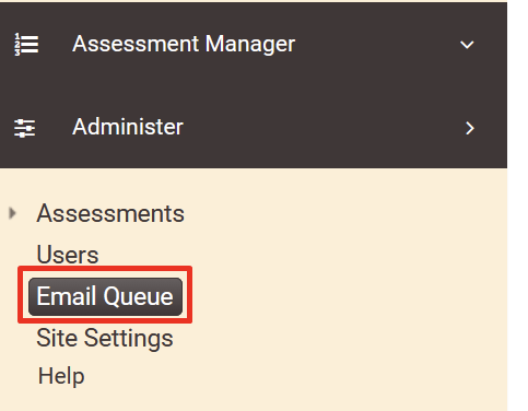 The Email Queue provides a centralized view of all emails that have been sent from your Brilliant Assessments platform. This area allows you to monitor email delivery, troubleshoot delivery issues, and resend emails when necessary.