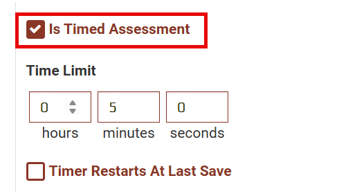 - Select Is Timed Assessment. Once selected, timing-related fields will appear.