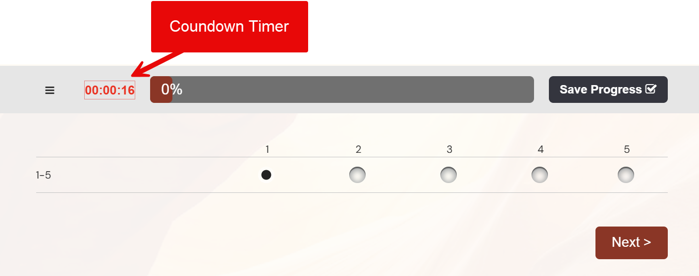- A countdown timer is shown to respondents while completing the assessment.