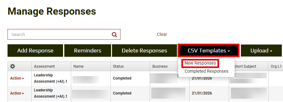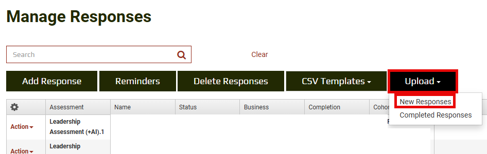 Overview: This guide walks through how to upload new responses using a CSV file to create new response records and send assessment invitations in bulk. This option is used when issuing assessments to individual participants from the response list screen.
