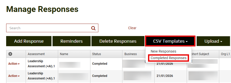 From the main menu, go to Responses. This is where the CSV templates are downloaded and uploaded.