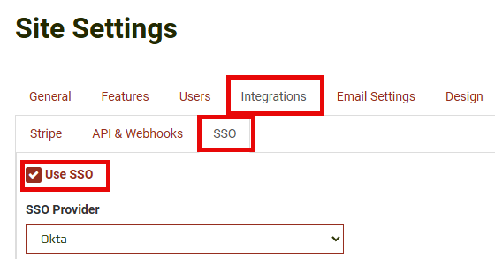 - Go to Site Settings > Integrations > SSO tab
